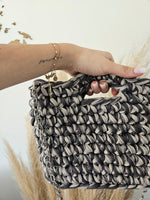 Ce magnifique petit sac aux différents tons de gris et paillettes légères, viendra accessoiriser tes tenues de manière élégante et discrète.